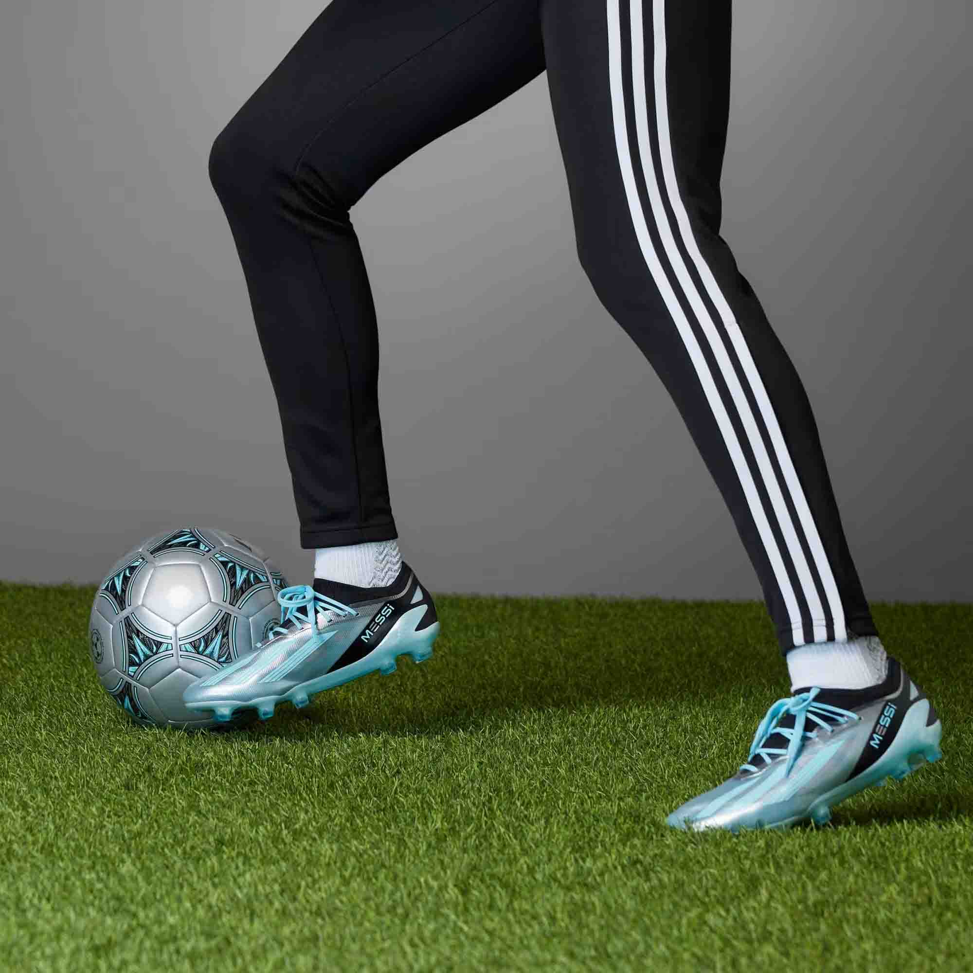Celebrating Lionel Messi’s enduring impact on the football world. With hints of Argentina blue and trophy-inspired silver on their semi-translucent Aeropacity Speedskin upper, these boots include reinforcements only where they’re needed. The adidas PRIMEKNIT collar straps you in as a flexible Aeroplate inlay in the Speedframe outsole propels you to G.O.A.T.-level agility on firm ground. Made with a series of recycled materials, this upper features at least 50% recycled content. This product represents just one of our solutions to help End Plastic Waste.
